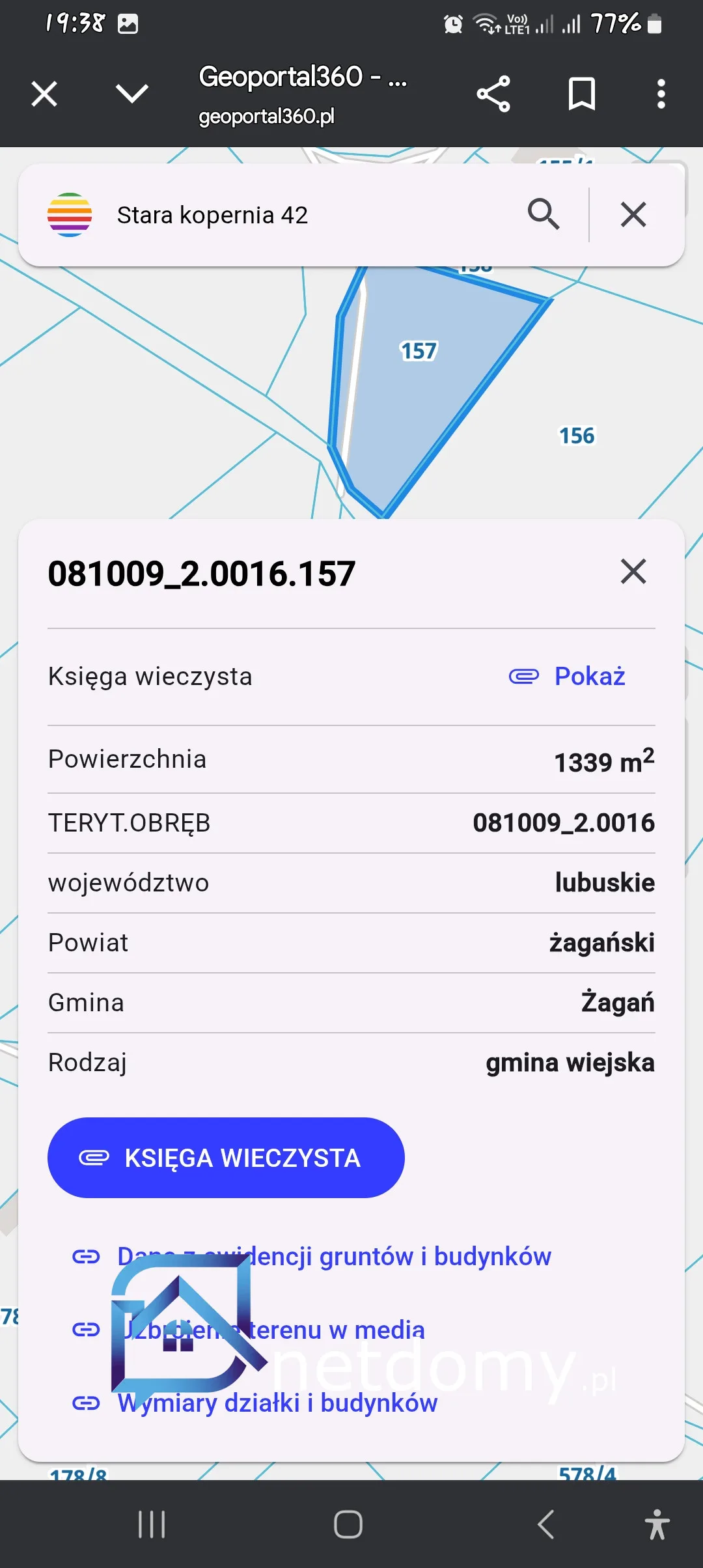 Sprzedam działkę w starej koperni o num 157
