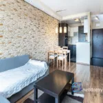 Lokal wyposażony jest w sprzęt AGD (lodówka z zamrażalką, piekarnik, płyta indukcyjna, zmywarka, pralka, odkurzacz). Dodatkowo na wyposażeniu duża sofa na salonie z funkcją spania oraz duże łóżko w sypialni 160×200.
