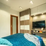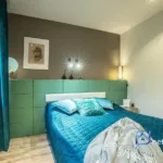 Sypialnia oferuje wygodne łóżko oraz pojemną szafę w zabudowie, dzięki czemu łatwo utrzymać porządek. W łazience znajduje się prysznic, umywalka z szafką, wc, praktyczna pralko suszarka oraz dodatkowe miejsce na kosmetyki i chemię domową. W całym mieszkaniu zamontowano rolety dzień noc oraz zasłony zaciemniające, które zwiększają komfort codziennego użytkowania.