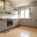 - Kuchnia: Nowoczesna zabudowa kuchenna + sprzęt AGD (kuchenka, piekarnik, okap)