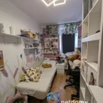 Salon 22,9m2, pokoje 11,8m2, 10,6m2, 7m2, łazienka (2,6m2) i WC (1,6m2) oddzielnie, garderoba ok 5m2 dodatkowo piwnica 1,68m2 i loggia 4,97m2 i zabudowana część korytarza 8,96m2. Przed mieszkaniem ok 5m2 – można dodatkowo zabudować i wynająć od WSM, my trzymamy tam rowery i nie zabudowaliśmy więc nie płacimy za to czynszu. Okna plastikowe. Kable energetyczne miedź. Pod blokiem nie ma problemu z zaparkowaniem. W okolicy dużo miejsc parkingowych. Rozkładowe. Remontowane 10 lat temu. Wymaga malowania ścian i cyklinowanie podłóg. W salonie, 2 pokojach i garderobie drewniana posadzka. 9m2 korytarza wynajmowane od administracji. Loggia duża i długa (4,4×1,13m) zamykana – szyby przesuwne na aluminiowych profilach trójdzielne. Bezpośrednio. Okna salonu i 2 pokoi wychodzą na podwórko a nie na ulicę. Kuchnia wraz z lodówka i sprzętem AGD wbudowanym zostaje. Pralka zostaje. Okna na wschód więc w lato nie jest gorąco.
