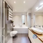 Łazienka została zaprojektowana tak, aby zapewnić maksymalną wygodę – znajduje się w niej zarówno wanna, jak i prysznic, co stanowi idealny kompromis dla domowników o różnych preferencjach. Całość uzupełnia toaleta, ergonomiczne szafki i nowoczesne wykończenie. Dodatkowo mieszkanie obejmuje praktyczną komunikację, przemyślane oświetlenie oraz przestrzeń pozwalającą na swobodne zaaranżowanie wnętrza.