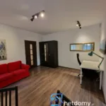 Mieszkanie jest umeblowane – w kuchni, poza zabudową kuchenną, lodówka, mikrofalówka , czajnik, zmywarka i nowa kuchenka elektryczna z piekarnikiem ( na zdjęciu w ogłoszeniu jest stara) , w salonie stoł z krzesłami, kanapa, szafa oraz biurko i krzesło, w sypialni łóżko z materacem, szafa, komoda i szafka nocna.