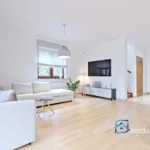 Na parterze znajduje się duży salon (33,25 m²) z wyjściem na wybrukowany taras i rozległy ogród, w pełni wyposażona kuchnia ze sprzętem renomowanych marek (Miele, Bosch, Franke) oraz praktyczny hall i łazienka z wc. Garaż w bryle budynku (19,82 m²) oraz kotłownia zapewniają wygodę użytkowania i łatwy dostęp do pomieszczeń technicznych.