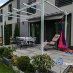 Ogród o powierzchni 540 m² został starannie zagospodarowany – nasadzenia tui zapewniają prywatność, znajduje się tu budynek gospodarczy, grill, huśtawka, strefa do crossfitu oraz taras idealny do wypoczynku. Osiedle jest zamknięte, z bramą na pilota, co gwarantuje bezpieczeństwo. Dodatkowo do dyspozycji są dwa miejsca parkingowe.