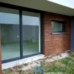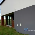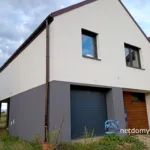 Działka ma około 350 m², kształt prostokąta i jest w pełni ogrodzona; dojazd prowadzi utwardzoną drogą z bramą wjazdową. Płaski teren ułatwia wykonanie tarasu, strefy relaksu czy małego placu zabaw. W bryle budynku znajduje się jednostanowiskowy garaż z bramą na pilota, a dodatkowe miejsce na podjeździe ułatwi parkowanie gościom.
