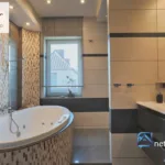 Funkcjonalny układ sprawdzi się w rodzinie i przy pracy z domu. Na parterze wydzielono strefę dzienną z wyjściem na taras i do ogrodu; piętro po kompleksowym remoncie urządzono w nowoczesnym stylu – tu znajdziesz reprezentacyjny salon, sypialnie oraz nową łazienkę z oknem, wanną i prysznicem. Dom jest w całości podpiwniczony, dzięki czemu zyskujesz przestrzeń na warsztat, magazyn lub pralnię.