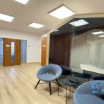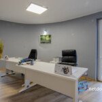 Dom składa się z trzech kondygnacji: parteru, piętra oraz piwnicy. Na parterze (85,8 m²) znajdują się: przestronny hol z recepcją, pokój konferencyjny, kuchnia, pokój biurowy oraz wyjście na taras. Piętro (90,3 m²) to cztery pokoje biurowe, sala konferencyjna, toaleta oraz korytarz. Piwnica (87,76 m²) oferuje trzy pomieszczenia (obecnie jako kuchnia), toaletę oraz niezależne wejście z witryną.