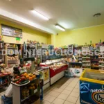 Parter budynku (241 m²) stanowi część usługową i obejmuje w pełni wyposażony sklep spożywczy, przestronną salę konsumpcyjną z barem oraz profesjonalne zaplecze kuchenne z piecem do pizzy. Dodatkowo znajduje się tam kilka magazynów, część socjalna oraz trzy łazienki z WC. Część usługowa ma trzy oddzielne wejścia, rampę dostawczą i dostęp do piwnicy.