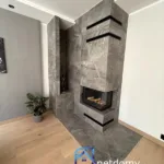 Parter tworzy reprezentacyjna strefa dzienna: salon z jadalnią i kuchnią płynnie łączą się w otwartą przestrzeń sprzyjającą wspólnemu spędzaniu czasu. Z salonu wyjdziesz na duży, około 60‑metrowy taras, który latem staje się naturalnym przedłużeniem domu. W salonie znajduje się kominek, budujący klimat w chłodniejsze wieczory. Na tym poziomie zaplanowano także praktyczne WC oraz garaż z pompą ciepła i zmiękczaczem wody. Wykończenie obejmuje panele podłogowe i gładzie na ścianach, co podkreśla nowoczesny charakter wnętrz.