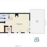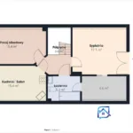 Na parterze (ok. 68 m²) zaprojektowano wygodny wiatrołap, pokój pełniący funkcję sypialni lub gabinetu (12,8 m²), kotłownię z pralnią (8,2 m²), łazienkę (4,2 m²) oraz duży salon z otwartą kuchnią (39 m²) – to serce domu z wyjściem na taras i ogród. Na piętrze (ok. 52 m²) znajdują się: kuchnia z salonem (15,4 m²), pokój rekreacyjny (15,4 m²), sypialnia (17,1 m²), garderoba (6,6 m²) i łazienka z WC (5,2 m²). Przemyślany program pomieszczeń pozwala wydzielić strefę dzienną i prywatną oraz komfortowo mieszkać wielopokoleniowo lub pracować z domu.