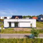 Najważniejsze atuty: 220 m² parterowej przestrzeni, 4 pokoje (3 sypialnie) + 2 łazienki (pokój kąpielowy + WC), garaż dwustanowiskowy w bryle, działka ok. 1100 m², technologia: bloczek komórkowy + ocieplenie 20 cm, płyta fundamentowa, dach płaski EPDM, aluminiowa stolarka ALUPROF, żaluzje fasadowe SELT, instalacje: elektryczna, wod‑kan i rekuperacyjna, przygotowanie pod pompę ciepła, media: prąd, woda, przydomowa oczyszczalnia. Dom w niepełnym stanie deweloperskim – doskonała baza do wykończenia według własnych preferencji.