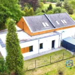 Budynek wzniesiono w technologii tradycyjnej z bloczków ceramicznych (Porotherm) z ociepleniem styropianem 15 cm. Dach pokryto dachówką, a na części dachu wykonano taras z papą termozgrzewalną. W całym domu rozprowadzono nowe instalacje: wodno‑kanalizacyjną i elektryczną, a w salonie przygotowano podłączenie pod klimatyzację. Ogrzewanie podłogowe zapewnia komfort cieplny, a źródło ogrzewania możesz dobrać do preferencji – dostępny jest gaz lub opcja montażu pompy ciepła. Plastikowe okna z zewnętrznymi roletami elektrycznymi oraz solidne drzwi antywłamaniowe podnoszą bezpieczeństwo i komfort użytkowania.