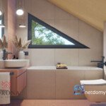 Proponowany układ 94 m² to jasny salon z aneksem kuchennym oraz wyjściem na taras, dwie ustawne sypialnie (lub sypialnia i gabinet) oraz komfortowa łazienka. Otwarte belki stropowe i wysokie przeszklenia tworzą wyjątkową, skandynawską atmosferę, a ciepły odcień naturalnego drewna stanowi idealne tło dla nowoczesnych aranżacji. Dzięki zabudowie modułowej istnieje możliwość rozbudowy domu o kolejne segmenty lub zmianę konfiguracji pomieszczeń według własnego projektu.