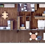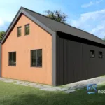 Dom składa się z dwóch kondygnacji: parteru o powierzchni 77 m² oraz strychu 44 m². Na parterze znajduje się przestronny salon z aneksem kuchennym i wyjściem na taras, łazienka oraz wiatrołap. Na poddaszu zaplanowano trzy sypialnie i drugą łazienkę. Układ zapewnia komfortowe warunki dla rodziny 2+2 lub 2+3.