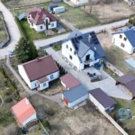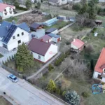 Działka w kształcie prostokąta jest idealna do stworzenia ogrodu, strefy rekreacyjnej lub uprawy roślin. Otoczenie nieruchomości to głównie zabudowa jednorodzinna i tereny zielone, co zapewnia spokój i komfort życia. Najbliższa okolica oferuje szkołę, sklepy, lokale usługowe oraz kościół, co czyni lokalizację niezwykle praktyczną dla rodziny.