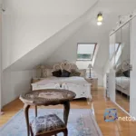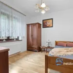 Na piętrze przewidziano cztery ustawne, komfortowe pokoje i drugą łazienkę z wanną oraz prysznicem. Łącznie dom oferuje siedem pełnowartościowych pomieszczeń mieszkalnych, co ułatwia wygodne wydzielenie prywatnych stref dla domowników. Ogrzewanie podłogowe na parterze i w łazienkach zapewnia równomierne ciepło, a systemy towarzyszące – w tym solary, centralny odkurzacz, wideodomofon oraz elektryczne rolety – podnoszą codzienny komfort. Rozwiązania zabezpieczające obejmują instalację alarmową i drzwi antywłamaniowe.