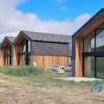Domy zostały wykonane w technologii tradycyjnej – murowanej, w systemie DryFix, z dachem Gerard oraz elewacją wykończoną termodrewnem.