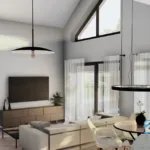 Dom został zaprojektowany w stylu nowoczesnej stodoły z antresolą, co nadaje mu wyjątkowy charakter i sprawia, że wnętrza są jasne oraz przestronne. Układ pomieszczeń został przemyślany tak, aby zapewnić komfort zarówno rodzinom, jak i osobom ceniącym funkcjonalność oraz nowoczesne rozwiązania.
