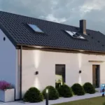 Dom został zaprojektowany w stylu nowoczesnej stodoły z antresolą, co nadaje mu wyjątkowy charakter i sprawia, że wnętrza są jasne oraz przestronne. Układ pomieszczeń został przemyślany tak, aby zapewnić komfort zarówno rodzinom, jak i osobom ceniącym funkcjonalność oraz nowoczesne rozwiązania.