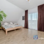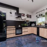 Ogrzewanie gazowe zapewnia piec dwufunkcyjny, a na podłodze ułożono trwałą deskę panelową. Taras wykonano z płyt tarasowych, idealnych do całorocznego użytkowania. W cenie pozostają nowoczesne meble kuchenne oraz zabudowy na wymiar (m.in. garderoby, schowki i zabudowa pralni), dzięki czemu przestrzeń jest funkcjonalna i spójna stylistycznie. Działka jest ogrodzona; wjazd ułatwia elektryczna brama przesuwna o szerokości 5,5 m. Do dyspozycji domowników jest garaż dwustanowiskowy z bezpośrednim wejściem – wygodne rozwiązanie niezależnie od pogody.