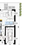 Wnętrze domu obejmuje cztery pokoje, co czyni go idealnym wyborem dla rodzin z dziećmi lub osób pracujących zdalnie, które potrzebują dodatkowego pomieszczenia na biuro. Przemyślany układ pomieszczeń pozwala na wydzielenie strefy dziennej oraz prywatnej. Duże okna zapewniają odpowiednie doświetlenie wnętrz, co wpływa na komfort i estetykę przestrzeni.