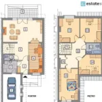Piętro to część prywatna domu. Znajdują się tutaj cztery ustawne sypialnie, w tym jedna z garderobą i wyjściem na balkon. To idealne rozwiązanie dla większej rodziny lub osób pracujących zdalnie, które potrzebują dodatkowej przestrzeni. Na piętrze zaprojektowano również dużą łazienkę. Dodatkowym atutem jest strych, który może służyć jako przestrzeń do przechowywania.