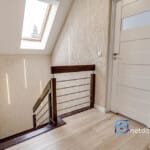 🚪 Na piętro prowadzą drewniane schody z nowoczesną balustradą. Korytarz jest jasny, a światło z dużego okna dachowego nadaje mu wyjątkowego klimatu. Tutaj znajdują się pokoje – sypialnie, gabinet, pokój dziecięcy – do własnej aranżacji. Wysokiej jakości drzwi, panele podłogowe i neutralna kolorystyka dają poczucie elegancji i przestrzeni.