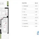 - Parter ≈70 m² – jasny salon z aneksem kuchennym i miejscem na wyspę, łazienka, kotłownia, wiatrołap oraz garaż jednostanowiskowy.