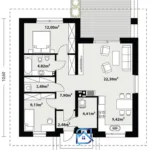 - Parter: słoneczny salon z miejscem na kominek i wyjściem do ogrodu, otwarta kuchnia, dwie sypialnie, łazienka z miejscem na wannę lub prysznic, wiatrołap oraz praktyczna kotłownia.