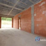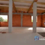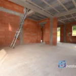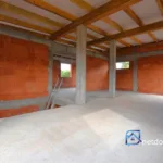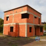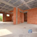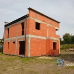Budynek realizowany jest w stanie surowym otwartym – wykonano ławy i ściany fundamentowe (z bloczków), ściany nośne z pustaków ceramicznych zbrojonych na szkody górnicze, strop Teriva, a dach w konstrukcji drewnianej pokryto papą i ocieplono wełną mineralną. Aktualna faza bez ścian działowych pozwala swobodnie ukształtować finalny układ pomieszczeń. W projekcie przewidziano ogrzewanie pompą ciepła, co w połączeniu z dobrą izolacją przełoży się na niższe koszty eksploatacji.