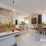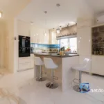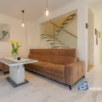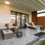 Dom oferuje nowoczesne udogodnienia. Ogrzewanie realizowane jest przez kocioł gazowy dwufunkcyjny oraz instalację ogrzewania podłogowego, co zapewnia równomierny komfort cieplny. W salonie znajduje się kominek – przyjemne dopełnienie jesiennych i zimowych wieczorów. W budynku zamontowano klimatyzację. Media miejskie obejmują wodę, prąd, gaz, kanalizację sanitarną oraz deszczową. Dojazd ulicami z kostki brukowej podkreśla zadbany charakter okolicy, a prosta, elegancka bryła dobrze wpisuje się w sąsiednią zabudowę.