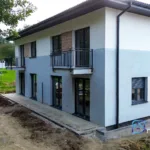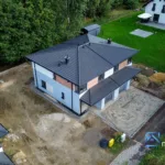 Wykonanie i technologia: ściany z bloczków betonu komórkowego 25 cm docieplone 15 cm styropianu, ocieplone posadzki i stropodach, tynki wewnętrzne gipsowe, elewacja z tynkiem akrylowym typu „baranek”. Zamontowano okna trzyszybowe wraz z roletami zewnętrznymi na parterze, a w dachu zastosowano dachówkę betonową z estetyczną podbitką PCV. W budynku rozprowadzono wszystkie instalacje: wodną, kanalizacyjną, elektryczną i gazową. Źródłem ciepła jest kocioł gazowy dwufunkcyjny współpracujący z ogrzewaniem podłogowym w całym domu – to komfort i niższe rachunki dzięki równomiernej dystrybucji ciepła.
