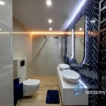 Dom jest niezamieszkały, kompletnie wyposażony i gotowy do wprowadzenia. Uwagę zwraca jakość materiałów i spójna stylistyka wnętrz. Komfort podnosi klimatyzacja w salonie i trzech sypialniach, a także sterowane strefowo ogrzewanie podłogowe działające w całym domu. Źródłem ciepła jest piec gazowy dwufunkcyjny, co w połączeniu z nowoczesną instalacją pozwala na ekonomiczną eksploatację. Do dyspozycji są miejsca postojowe przed budynkiem, a teren jest schludnie zorganizowany i sprzyja codziennemu funkcjonowaniu rodziny.