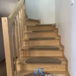 Parter tworzy wygodną strefę dzienną: osobna, jasna kuchnia z możliwością otwarcia na salon, salon z wyjściem na taras i ogródek, przedpokój z pojemną szafą oraz WC połączone z pralnią/kotłownią. Na piętrze zaplanowano trzy sypialnie bez skosów i przestronną łazienkę z wanną. Drewniane schody prowadzą na ocieplony strych – idealny na biuro, pokój hobby lub dodatkową sypialnię.